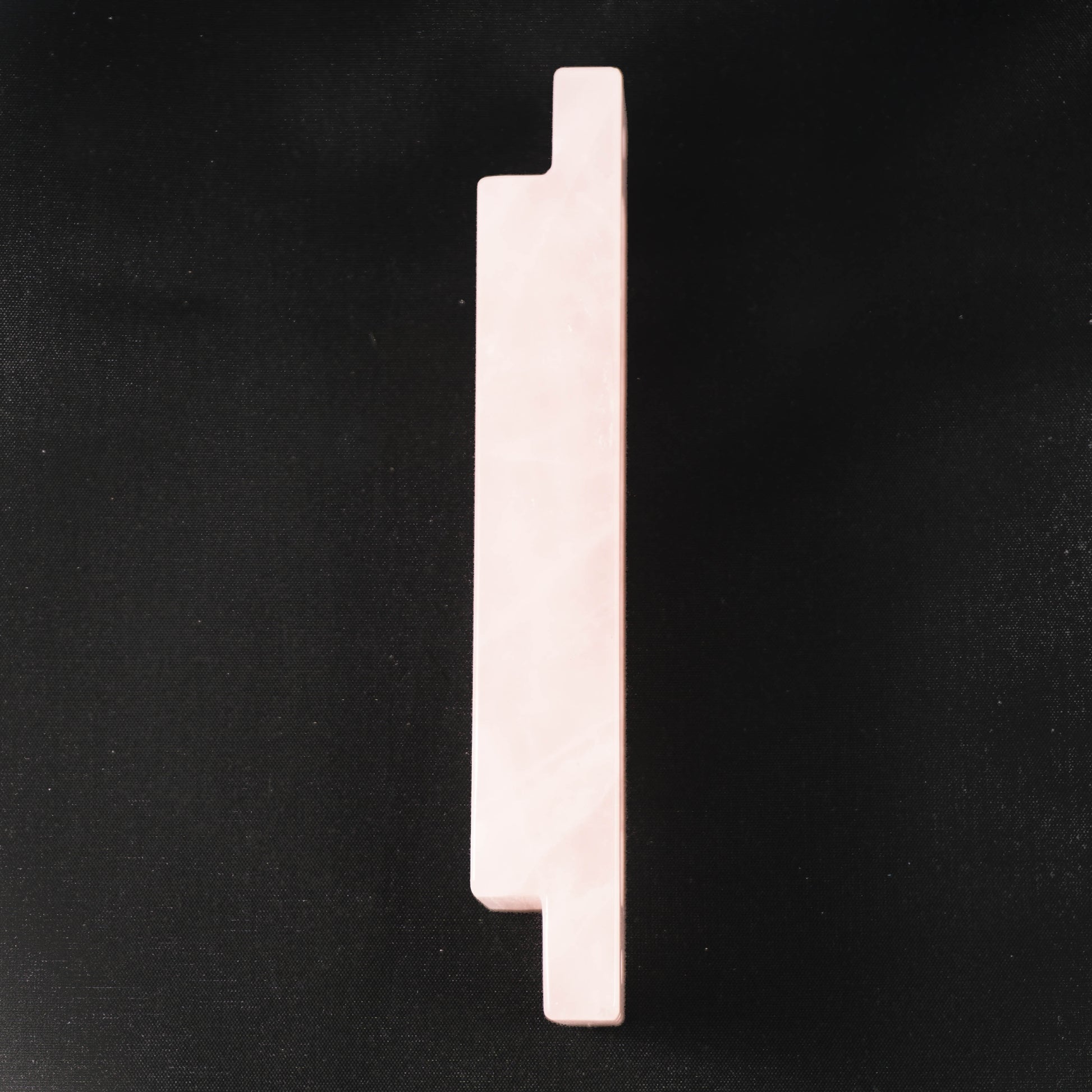 The handmade Rose Quartz Mezuzah case is perfect for the home. It is beautifully hand carved from one piece of rose quartz stone and etched in resin with a Shin (ש) and Star of David. It has a beautiful crystal pink color. The quartz is 100% pure stone so the color may vary slightly.